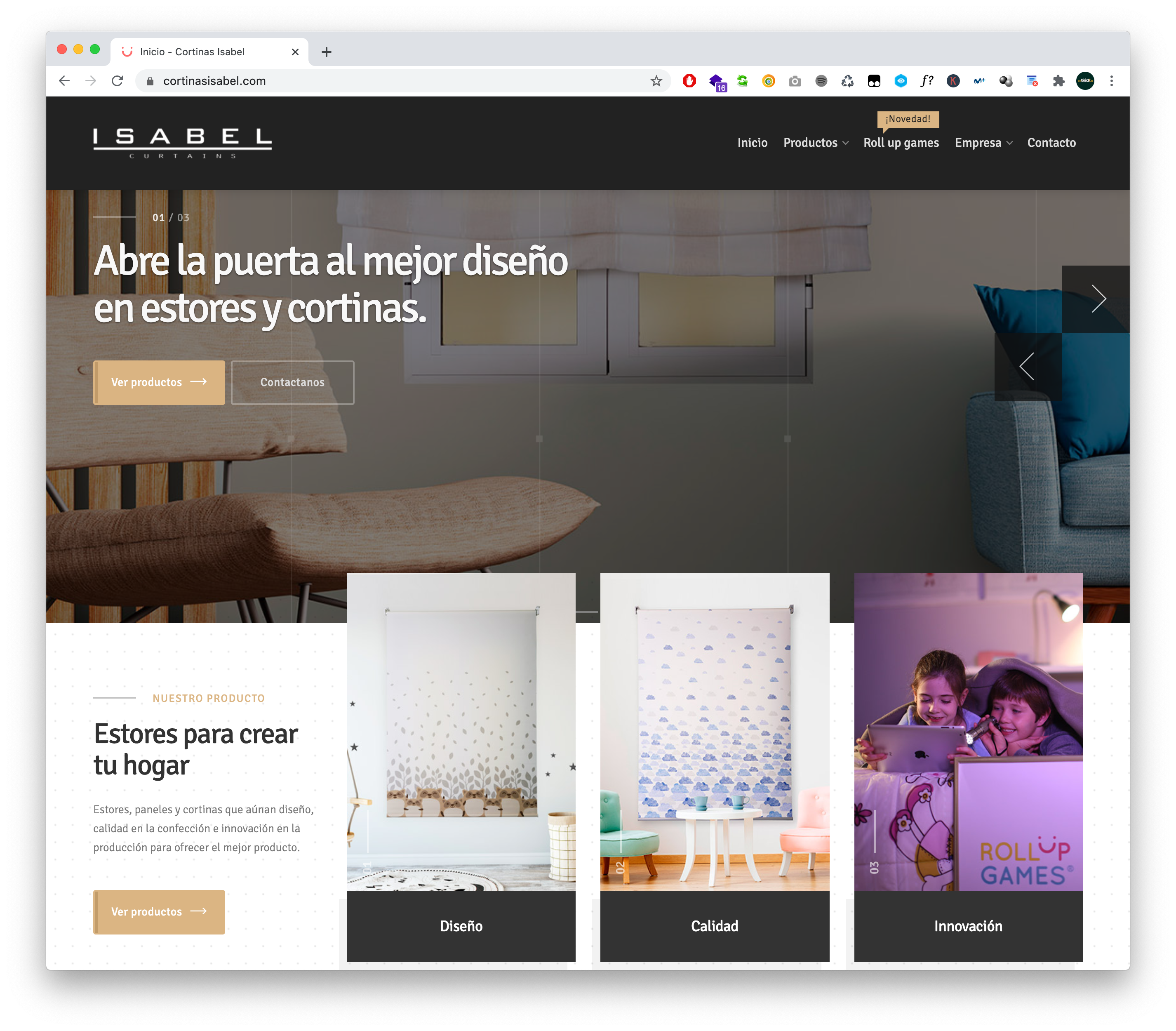 Cortinas Isabel SA, uno de los proveedores más importantes de estores de Leroy Merlín nos encarga la realización de su nueva página web, y con ello la realización de fotografías para los packaging de sus productos.